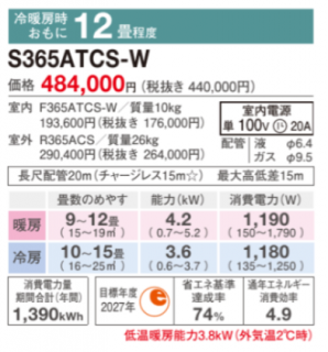ダイキン CXシリーズ 12畳用 (S365ATCS-W)