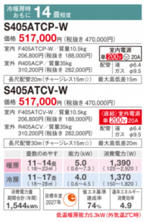 ダイキン CXシリーズ 14畳用 (S405ATCS-W)