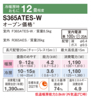 ダイキン Eシリーズ 12畳用 (S365ATES-W)