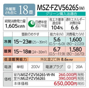 三菱 ルームエアコン FZシリーズ 18畳用 (MSZ-FZV5625S)