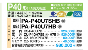 【限定特価】Panasonic XEPHY Eco 4方向カセット型 新ナノイーX P40型 シングル PA-P40U7HB