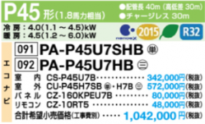 Panasonic XEPHY Eco 4方向カセット型 新ナノイーX P45型 シングル PA-P45U7HB
