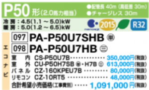 Panasonic XEPHY Eco 4方向カセット型 新ナノイーX P50型 シングル PA-P50U7HB