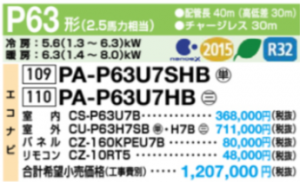 Panasonic XEPHY Eco 4方向カセット型 新ナノイーX P63型 シングル PA-P63U7HB