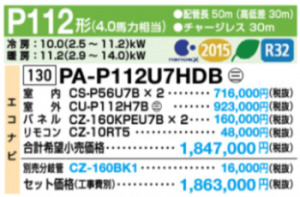 Panasonic XEPHY Eco 4方向カセット型 新ナノイーX P112型 ツイン PA-P112U7HDB