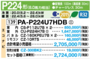 Panasonic XEPHY Eco 4方向カセット型 新ナノイーX P224型 ツイン PA-P224U7HDB