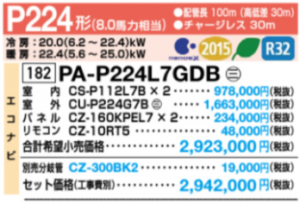 Panasonic XEPHY Premium 2方向カセット型 新ナノイーX P224型 ツイン PA-P224L7GDB