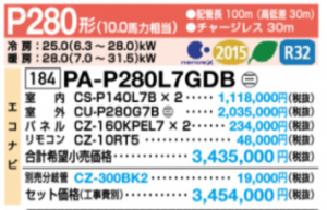 Panasonic XEPHY Premium 2方向カセット型 新ナノイーX P280型 ツイン PA-P280L7GDB