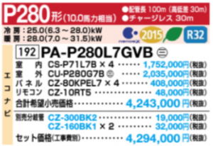 Panasonic XEPHY Premium 2方向カセット型 新ナノイーX P280型 同時ダブルツイン PA-P280L7GVBC