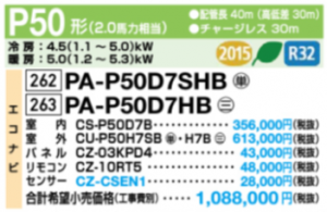 Panasonic XEPHY Eco 高天井用1方向カセット型 P50型 シングル PA-P50D7HB