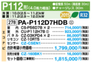 Panasonic XEPHY Eco 高天井用1方向カセット型 P112型 ツイン PA-P112D7HDB