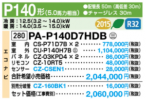 Panasonic XEPHY Eco 高天井用1方向カセット型 P140型 ツイン PA-P140D7HDB