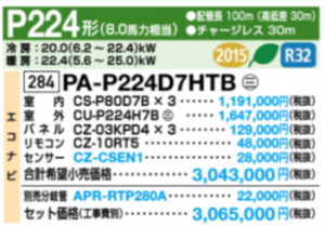 Panasonic XEPHY Eco 高天井用1方向カセット型 P224型 同時トリプル PA-P224D7HTB