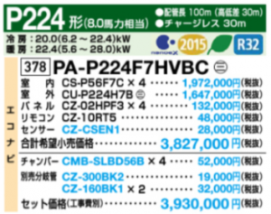 Panasonic XEPHY Eco 天井ビルトインカセット型 P224型 同時ダブルツイン PA-P224F7HVBC
