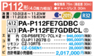 Panasonic XEPHY Premium 天井ビルトインオールダクト型 P112型 ツイン PA-P112FE7GDBC