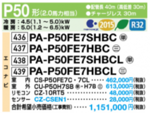 Panasonic XEPHY Eco 天井ビルトインオールダクト型 P50型 シングル PA-P50FE7HBC