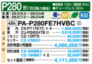 Panasonic XEPHY Eco 天井ビルトインオールダクト型 P280型 同時ダブルツイン PA-P280FE7HVBC