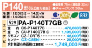Panasonic XEPHY Premium 天井吊型 新ナノイーX P140型 シングル PA-P140T7GB