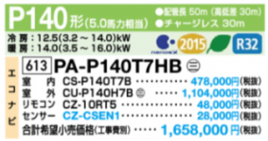 Panasonic XEPHY Eco 天井吊型 新ナノイーX P140型 シングル PA-P140T7HB