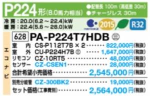 Panasonic XEPHY Eco 天井吊型 新ナノイーX P224型 ツイン PA-P224T7HDB