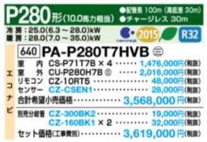 Panasonic XEPHY Eco 天井吊型 新ナノイーX P280型 同時ダブルツイン PA-P280T7HVBC