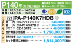 Panasonic XEPHY Eco 壁掛型 新ナノイーX P140型 ツイン PA-P140K7HDB