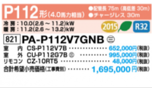 Panasonic XEPHY Premium 天吊型厨房エアコン P112型 シングル PA-P112V7GNB