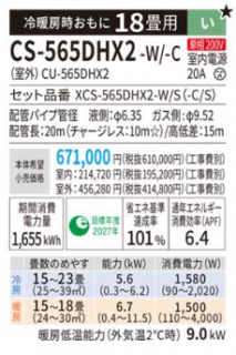 Panasonic パナソニック HXシリーズ 18畳用 CS-565DHX2