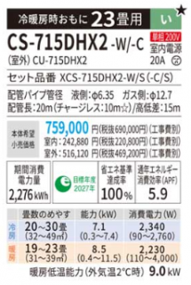 Panasonic パナソニック HXシリーズ 23畳用 CS-715DHX2