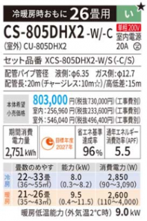 Panasonic パナソニック HXシリーズ 26畳用 CS-805DHX2