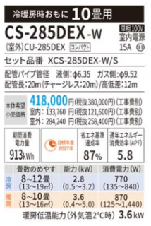 Panasonic パナソニック EXシリーズ 10畳用 CS-285DEX
