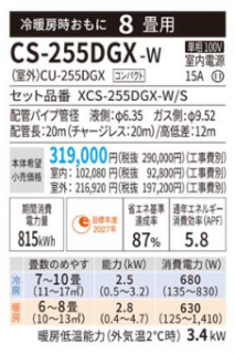 Panasonic パナソニック GXシリーズ 8畳用 CS-255DGX