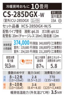 Panasonic パナソニック GXシリーズ 10畳用 CS-285DGX