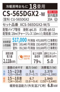 Panasonic パナソニック GXシリーズ 18畳用 CS-565DGX2