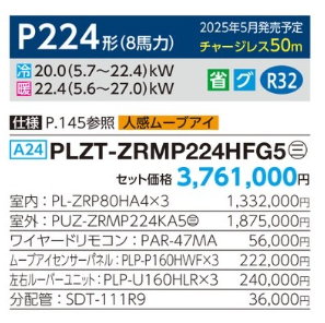 三菱 スリムZRi-スクエアタイプ 4方向天井カセット形<同時トリプル> P224形 (PLZT-ZRMP224HFG5)