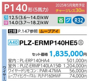 三菱 スリムERi-スクエアタイプ 4方向天井カセット形 <シングル> P140形 (PLZ-ERMP140HE5)