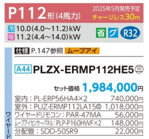 三菱 スリムERi-スクエアタイプ 4方向天井カセット形 <ツイン> P112形 (PLZX-ERMP112HE5)