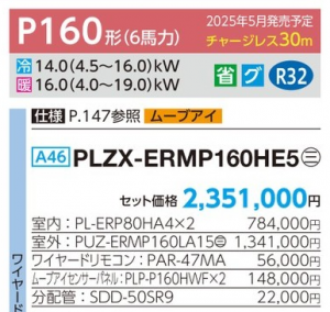 三菱 スリムERi-スクエアタイプ 4方向天井カセット形 <ツイン> P160形 (PLZX-ERMP160HE5)