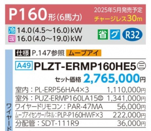 三菱 スリムERi-スクエアタイプ 4方向天井カセット形 <同時トリプル> P160形 (PLZT-ERMP160HE4)