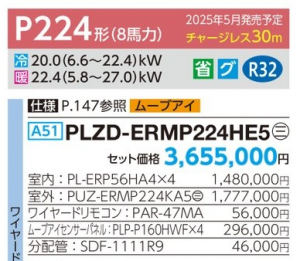 三菱 スリムERi-スクエアタイプ 4方向天井カセット形 <同時フォー> P224形 (PLZD-ERMP224HE4)