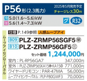 三菱 スリムZRコンパクトタイプ 4方向天井カセット形 <シングル> P56形 (PLZ-ZRMP56SGF5/PLZ-ZRMP56GF5)