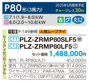 三菱 スリム ZR 2方向天井カセット形 <シングル> P80形 (PLZ-ZRMP80SLF5/PLZ-ZRMP80LF5)