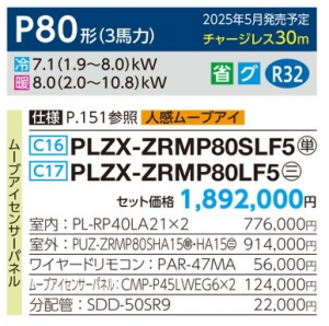 三菱 スリム ZR 2方向天井カセット形 <ツイン> P80形 (PLZX-ZRMP80SLF5/PLZX-ZRMP80LF5)