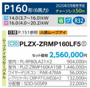 三菱 スリム ZR 2方向天井カセット形 <ツイン> P160形 (PLZX-ZRMP160LF5)