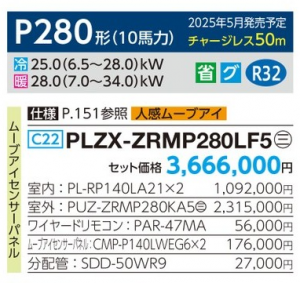 三菱 スリム ZR 2方向天井カセット形 <ツイン> P280形 (PLZX-ZRMP280LF5)
