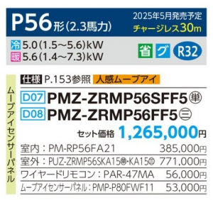 三菱 スリム ZR 1方向天井カセット形 <シングル> P56形 (PMZ-ZRMP56SFF5/PMZ-ZRMP56FF5)