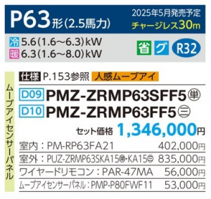 三菱 スリム ZR 1方向天井カセット形 <シングル> P63形 (PMZ-ZRMP63SFF5/PMZ-ZRMP63FF5)