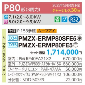 三菱 スリム ER 1方向天井カセット形 <ツイン> P80形 (PMZX-ERMP80SFE5/PMZX-ERMP80FE5)