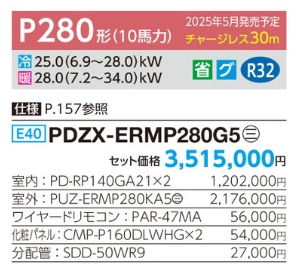 三菱 スリム ER 天井ビルトイン形 <ツイン> P280形 (PDZX-ERMP280G5)