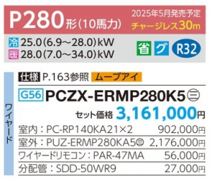 三菱 スリムER 天吊形 <ツイン> P280形 (PCZX-ERMP280K5)